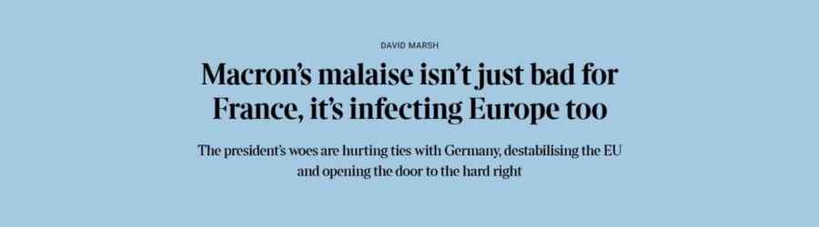« Macron a passé la majeure partie de son second mandat à maintenir le système politique en état de fonctionnement. Aujourd’hui, il semble dangereusement proche de le mettre hors service », déclare l’expert économique David Marsh.