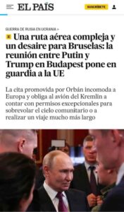 Le fait que Donald Trump et Vladimir Poutine s’apprêtent à se rencontrer à Budapest pour discuter de la paix en Ukraine apparaît comme une humiliation ostensible de l’Europe, écrit El País.